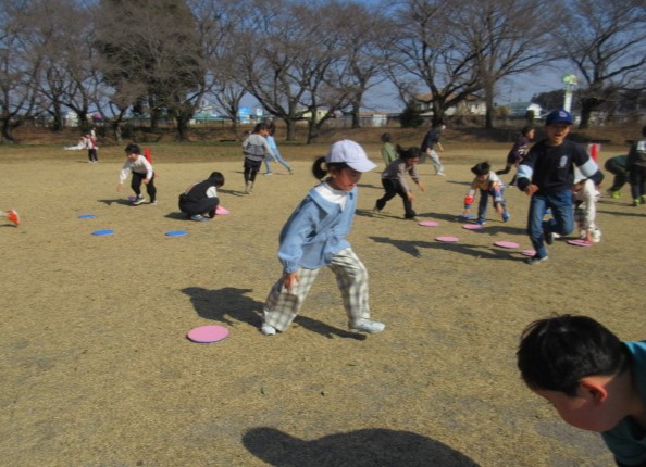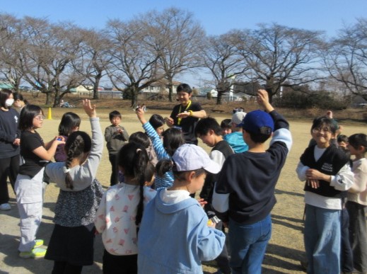 じゃんけんの勝敗によって異なる動きで遊ぶ「コーディネーションジャンケン」。勝っても負けてもたくさん走り回って、あっという間に身体が温まりましたね。