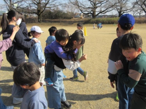 皆さんからのリクエストで「かわり鬼」と「こおり鬼」でも遊びました。途中で鬼がふえていきましたが最後まで逃げ切れた人もいました。最初に鬼になった以外は逃げ切った人、たくさんつかまえられた鬼や、たくさんつかまってしまった人も、時間いっぱい走り切る事が出来ましたね。
